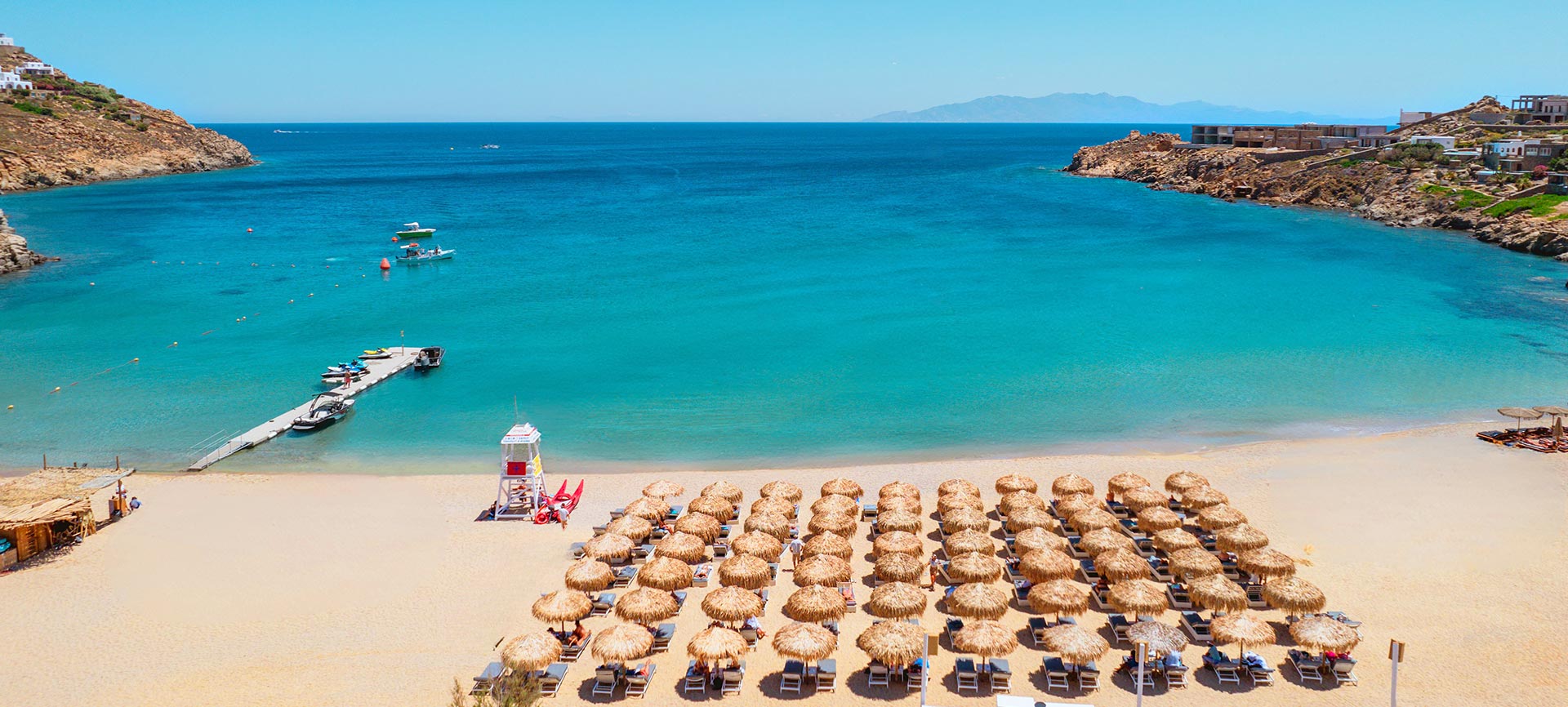 Welcome to Super Paradise Beach, a true gem located 6km south-east of Mykonos Town, along the wind-sheltered south coastline. Prepare to be enchanted by its unrivaled beauty, as it stands as one of the most breathtaking beaches in all of Greece. Picture this: fine golden sand tickling your toes, and the crystal-clear waters of the Aegean Sea beckoning you for a refreshing dip… This is the paradise that awaits you, and Thalas is here to elevate your beach experience to new heights!